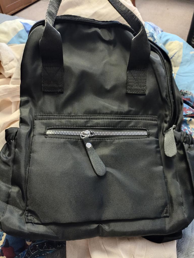 Color as in the photo. Looks nice. If it were made of eco leather it would be better. And the main zipper is one, it is inconvenient, with a double one it is better.