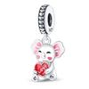 Pink Charm 100 %925 Sterling Silver Love Heart Cute Animals Koala Charms Bracelet Diy Jewelry Making