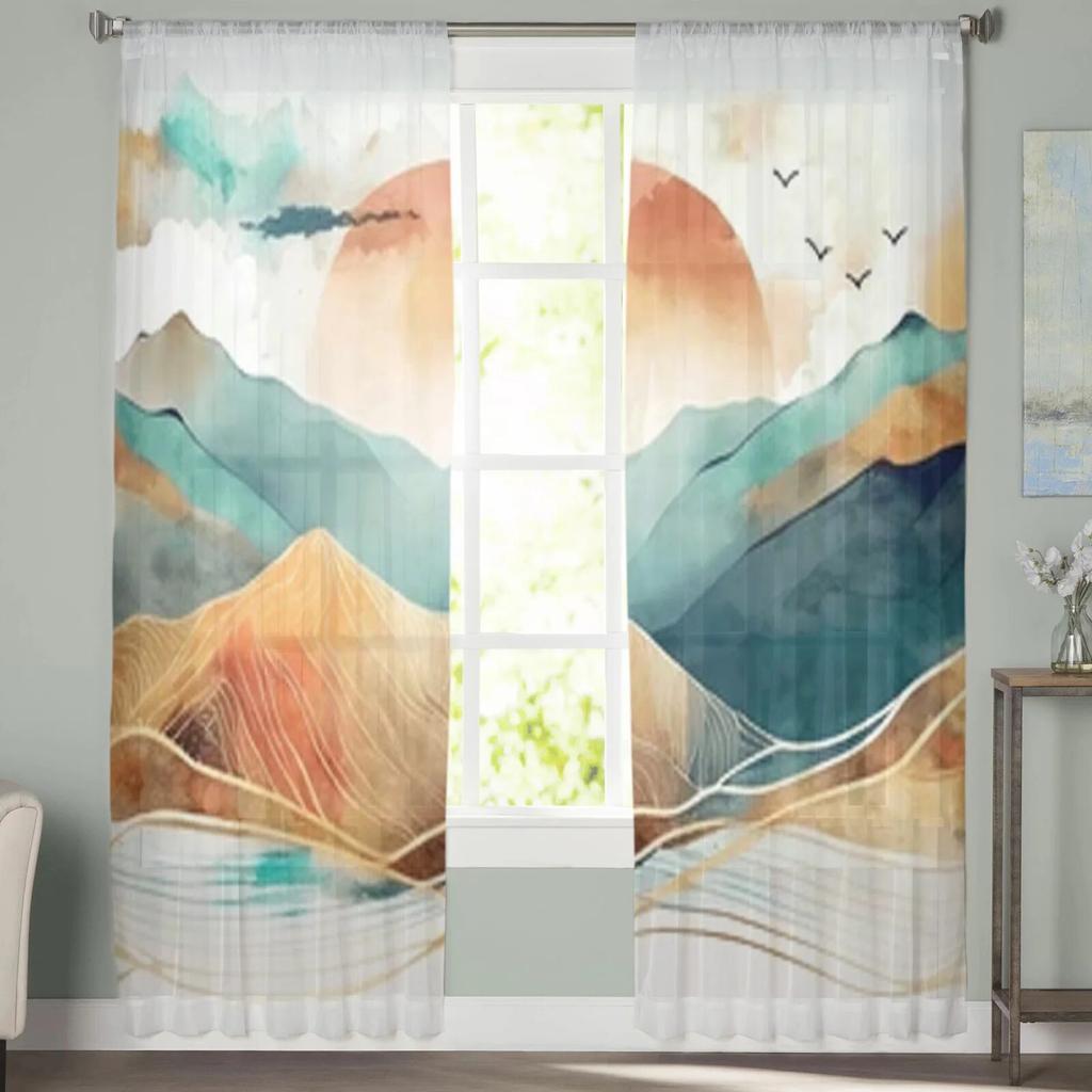 Abstract Mountains Watercolor Sheer Curtains Bedroom Voile Curtain Living Room Window Sheer Curtains Kitchen Tulle Drapes