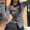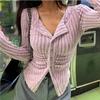 Korean New Knit Cardigan Women Y2k Clothes V Lapel Long Sleeve Knitted Jumper Collar Sweater Coat Vintage Slim Cardigan