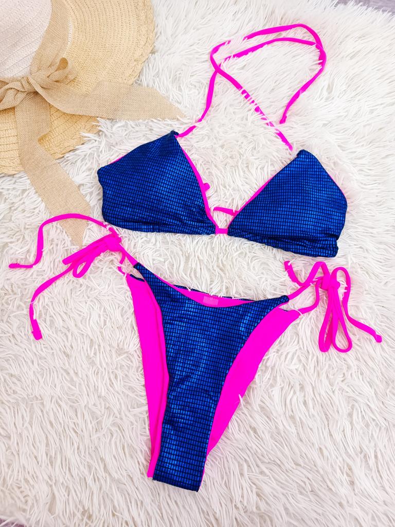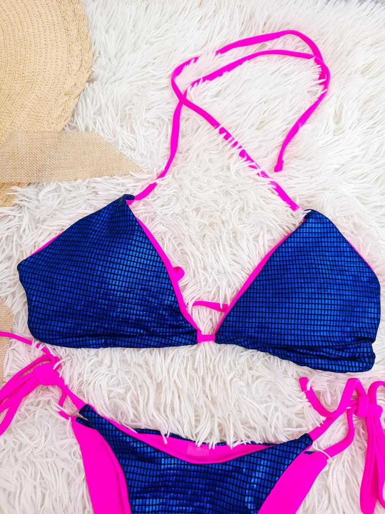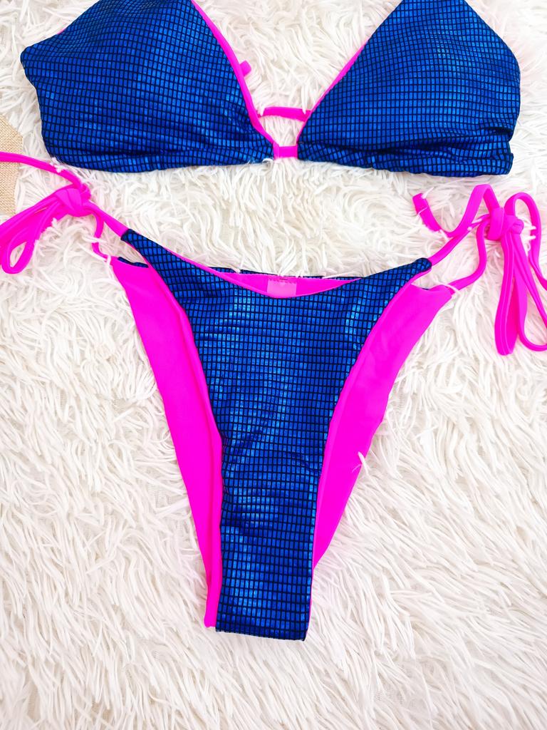 Sexy Plaid Halter Shiny Sequins Bikini Female Swimsuit Women Swimwear Two-pieces Bikini Set Bather Bathing Suit Swim Lady
