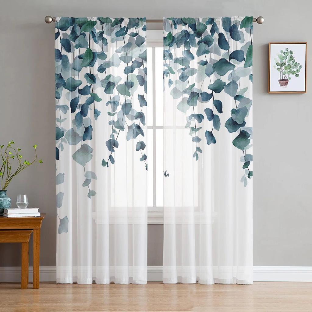 Watercolor Plant Leaves Sheer Curtains For Living Room Kitchen Window Curtains Bedroom Tulle Voile Curtains