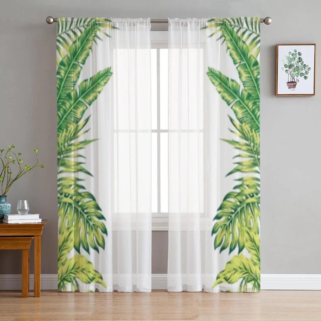 Tropical Plants Background Tulle Window Curtain For Living Room Bedroom Voile Sheer Curtains Kitchen Treatments Drapes