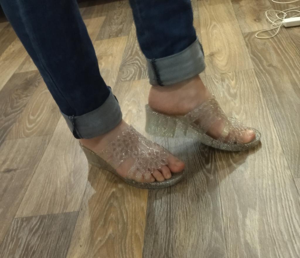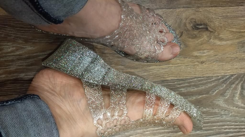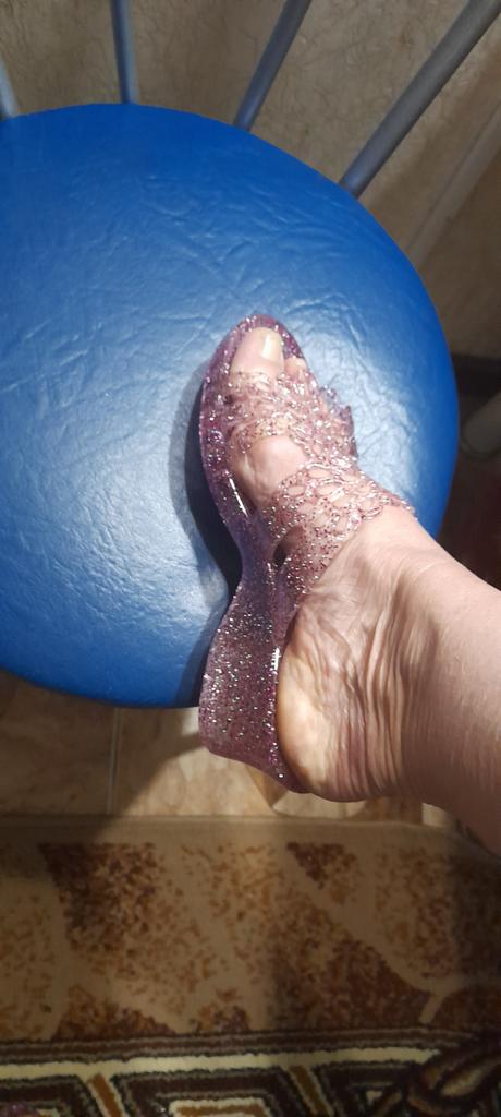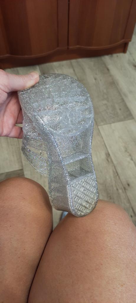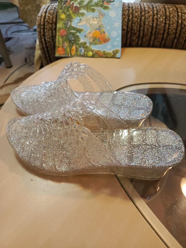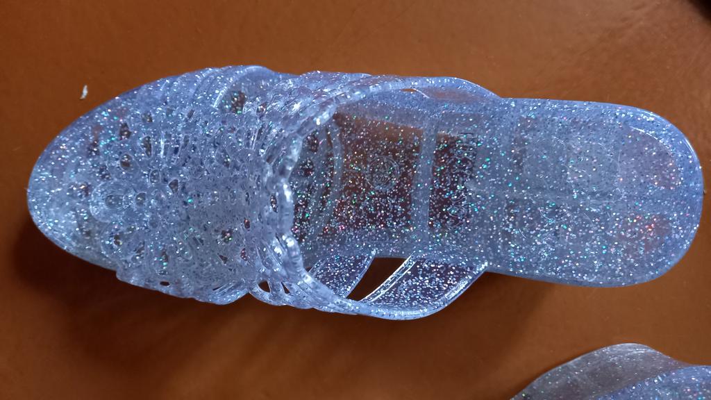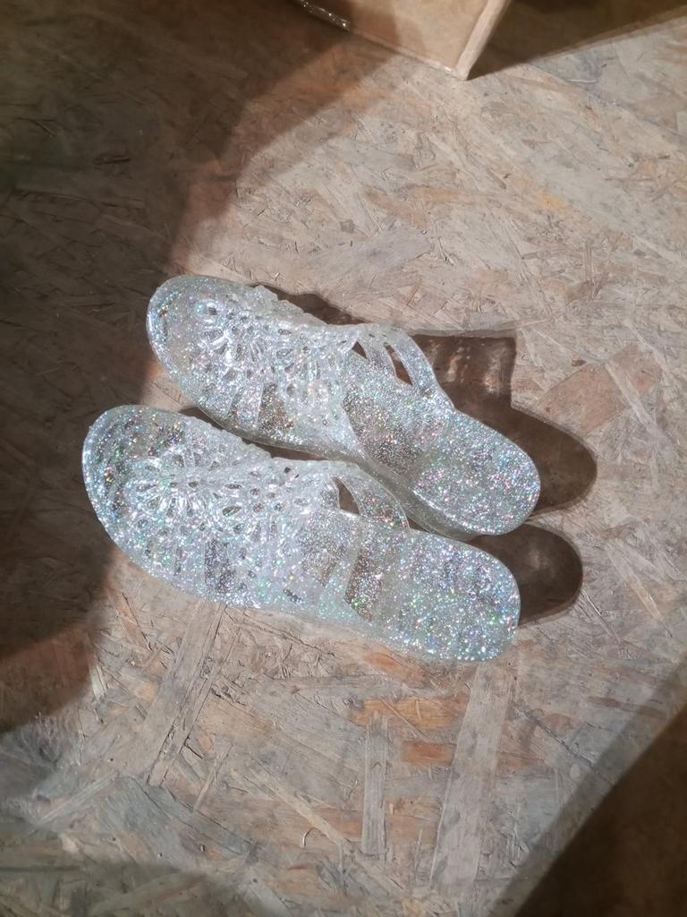 Very beautiful, like crystal, especially in the sun. But they run 2 sizes small, I took 40 instead of my usual 38-39, and they are still a bit small, my heel hangs over a little. They arrived with a small defect (tear), but it is not noticeable and not felt. 4 out of 5