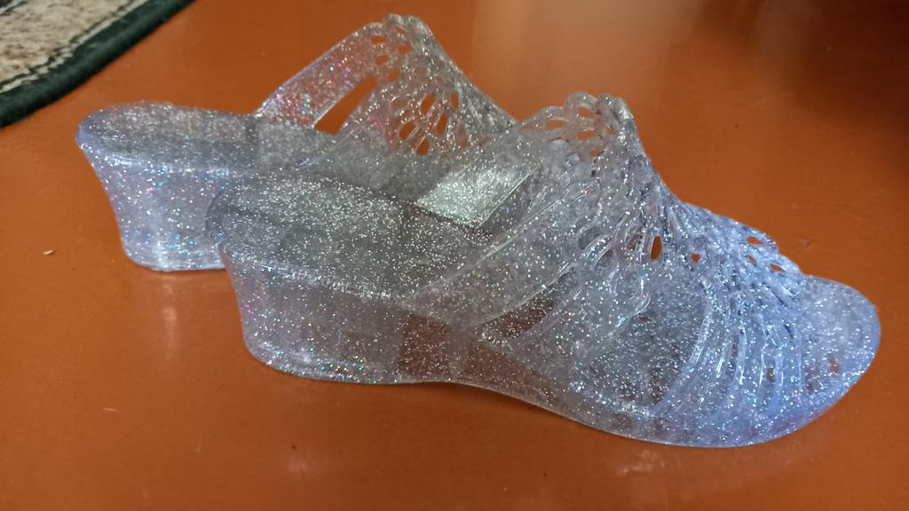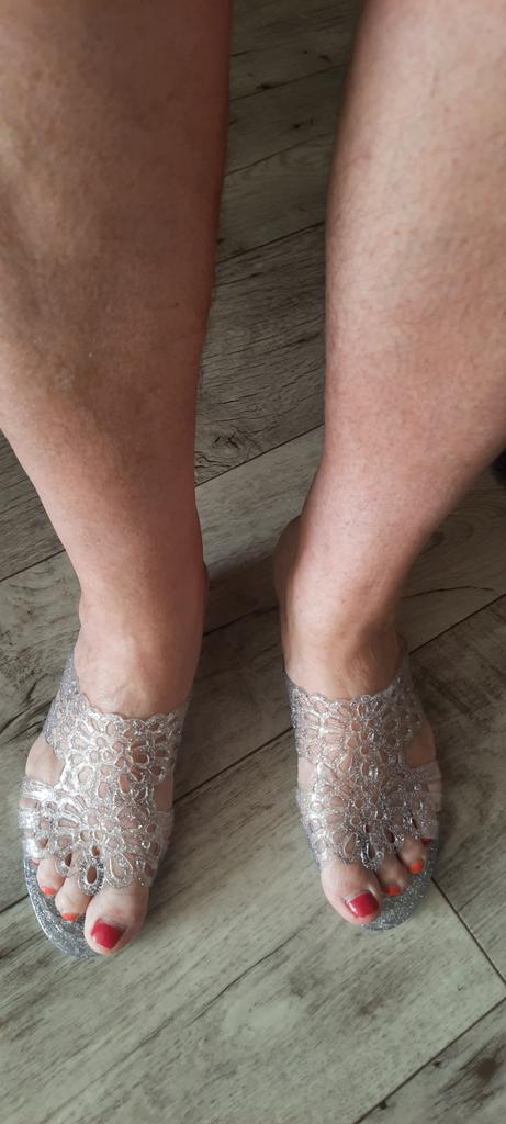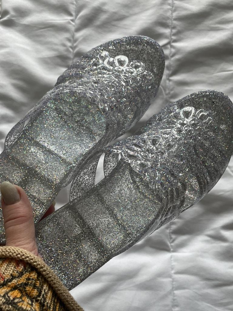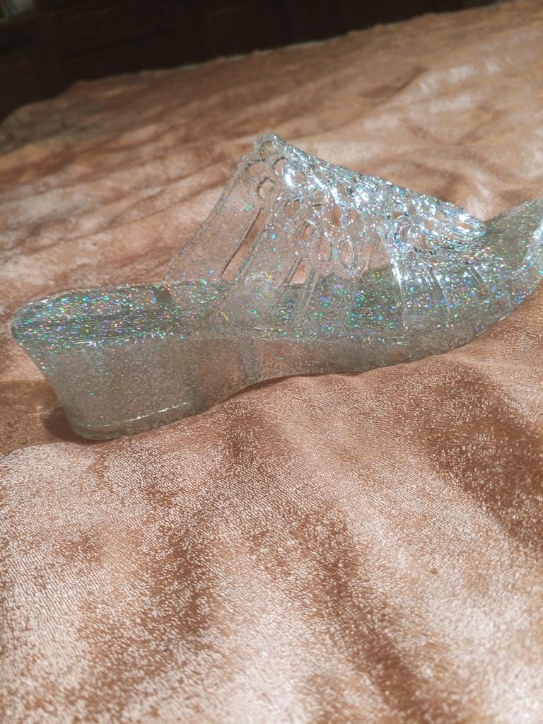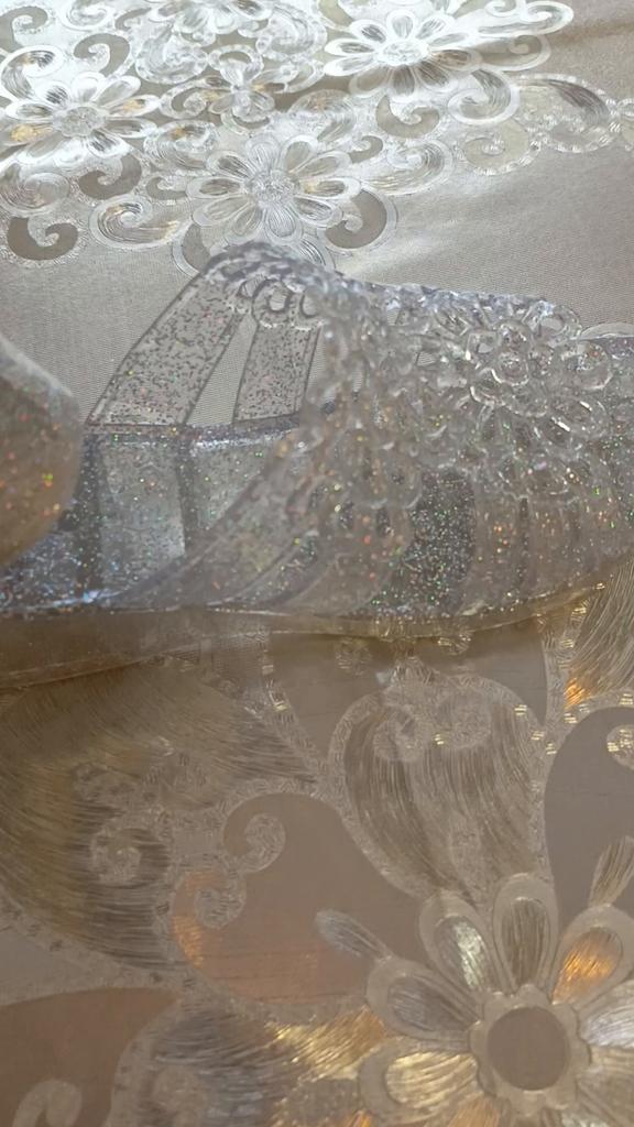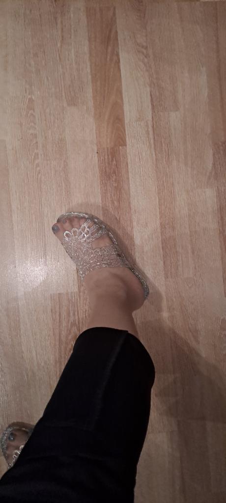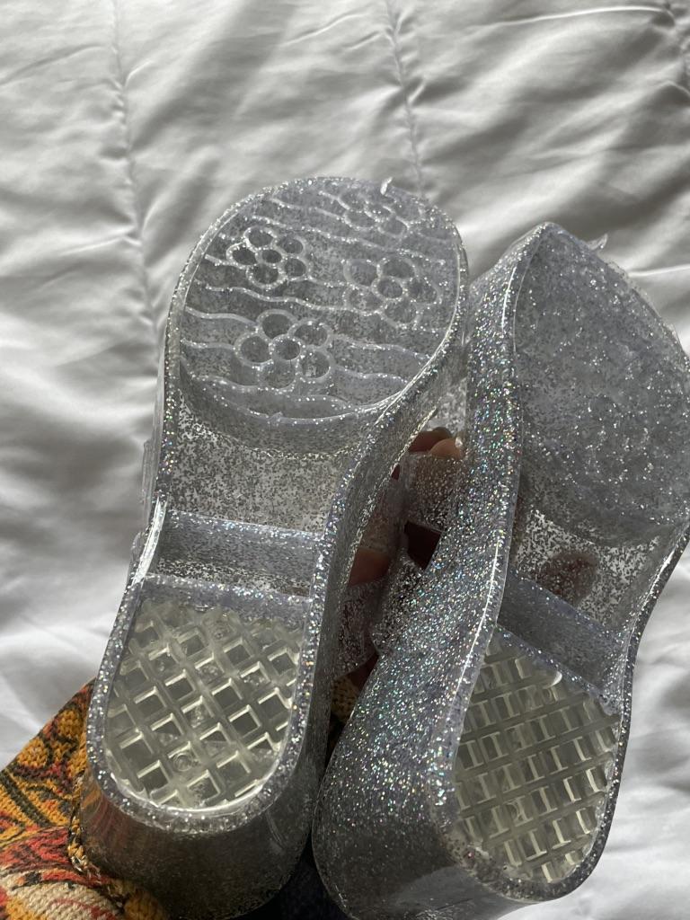 Very beautiful, like crystal, especially in the sun. But they run 2 sizes small, I took 40 instead of my usual 38-39, and they are still a bit small, my heel hangs over a little. They arrived with a small defect (tear), but it is not noticeable and not felt. 4 out of 5