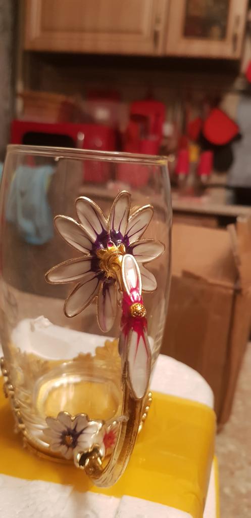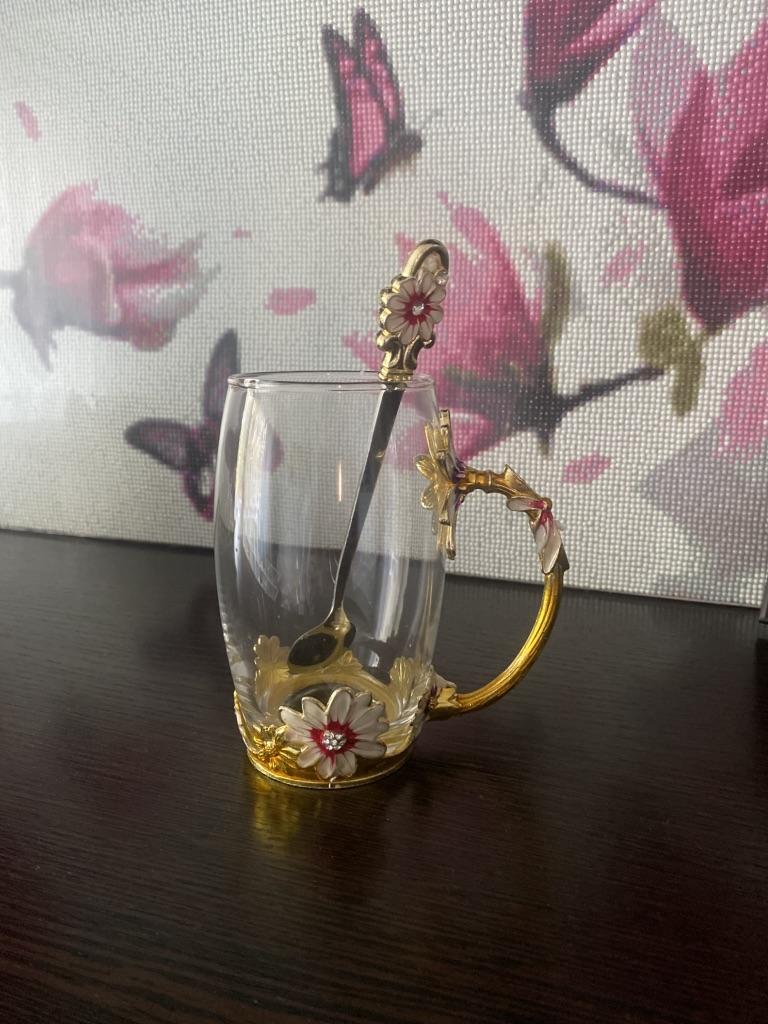 Enamel Flower Tea Cup Plate Set Elegant Flower Tea Cup Set Fancy Glass Coffee Mugs Mom Gift