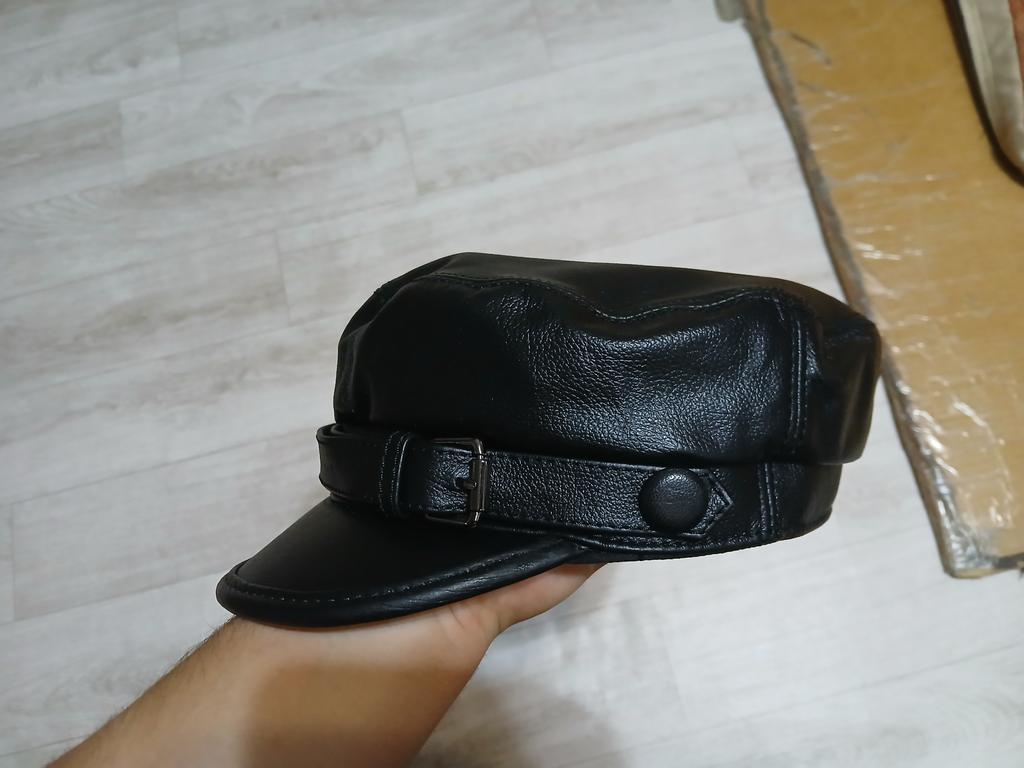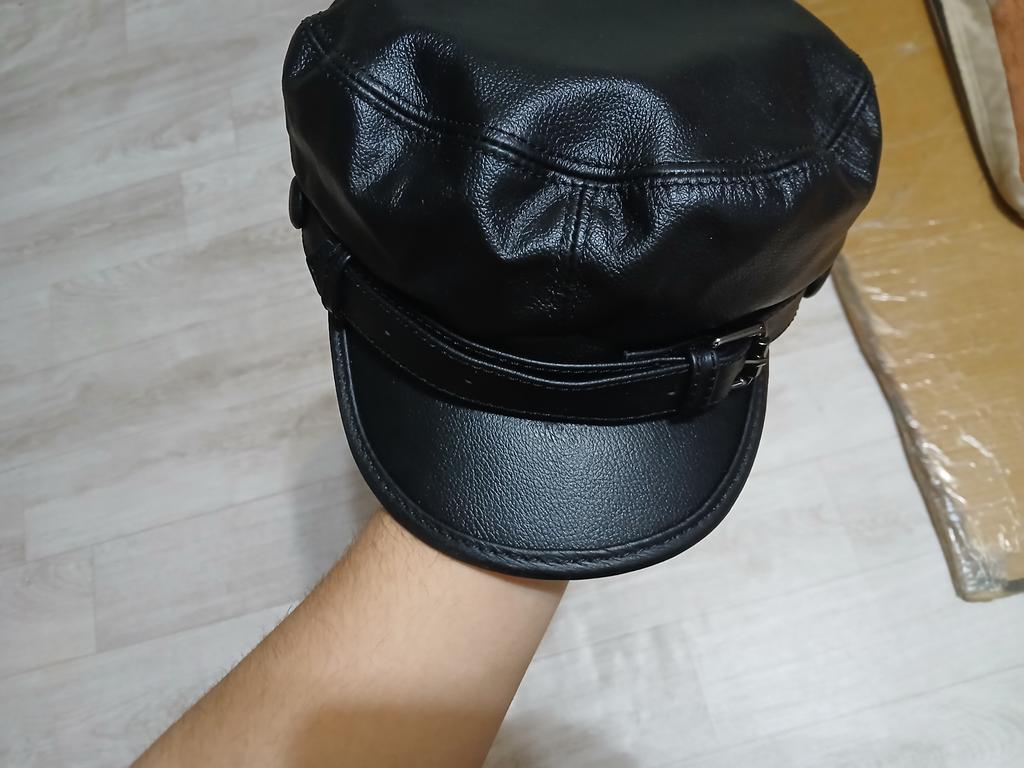 Cowhide Leather Hat Middle-aged and Old Men Autumn and Winter Student Youth Duck Tongue Navy Flat Top Military Hat