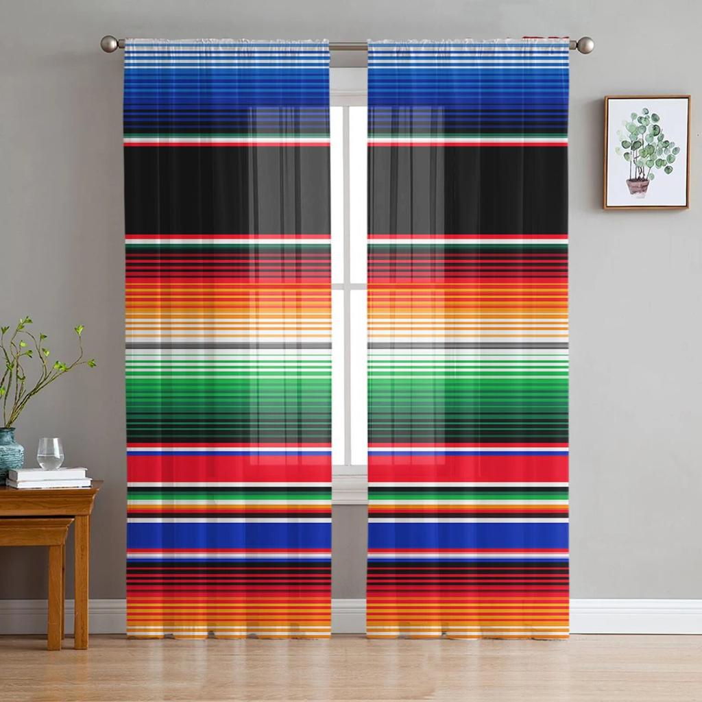 Colorful Mexican Stripes Bedroom Transparent Sheer Curtains Holiday Decoration Window Voile Tulle Curtain