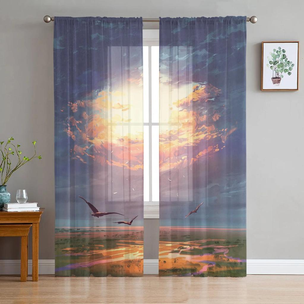 Cloud Painting Bird Sky Modern Printed Tulle Curtains for Bedroom Balcony Window Decor Creative Fashion Home Sheer Curtain