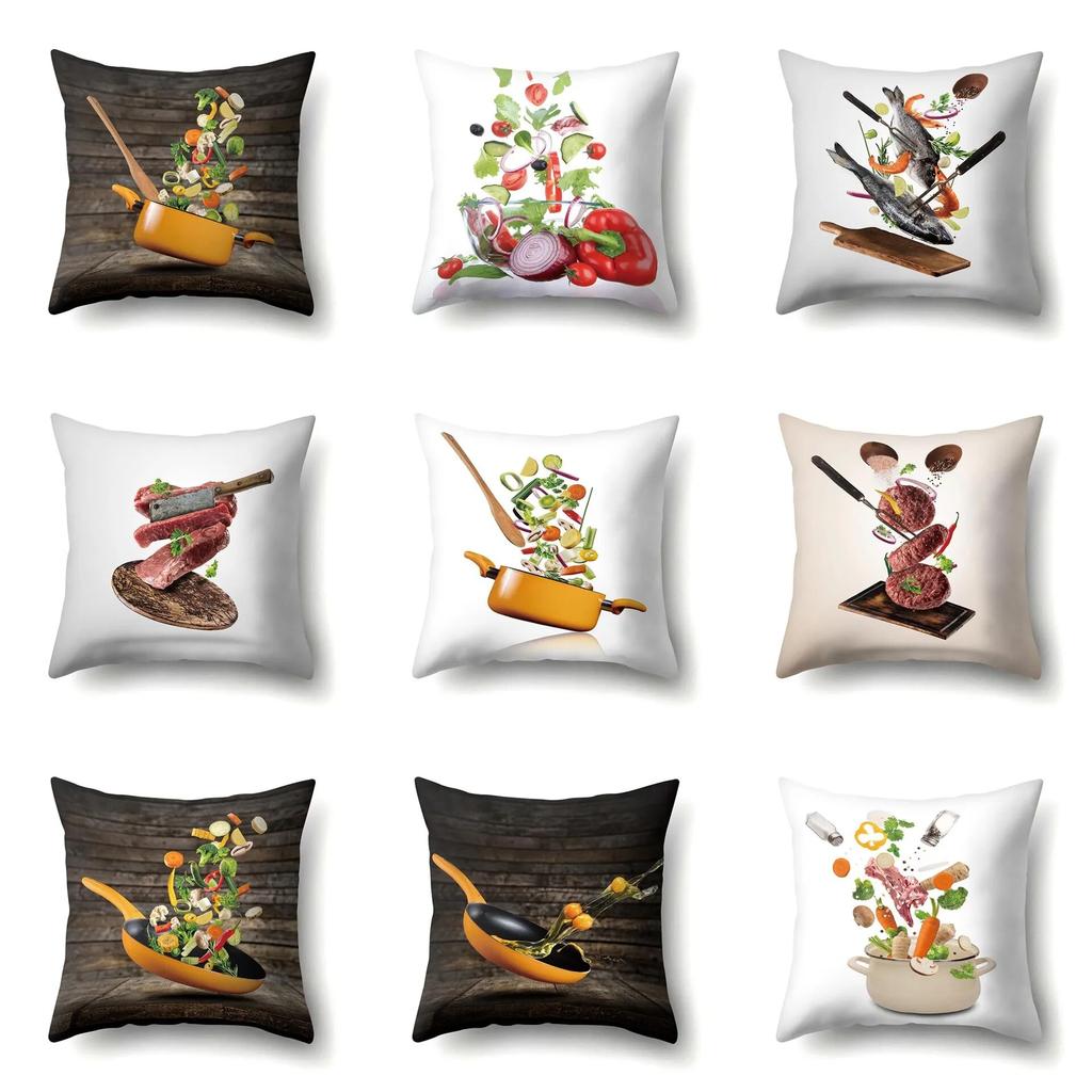 Cooking Food Pillowcase Cartoon Pattern Lumbar Pillow Sofa Cushion