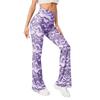 Women Flared Trousers Contrast Color Water Wave Print High Waist Spring Yoga Pants Slim Fit Elastic Waist Bell-bottomed Pants