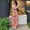 French Rose Print Lace Dress for Women Summer Autumn New Design Sense High Waist Wrapped Chic Strap Long Dresses