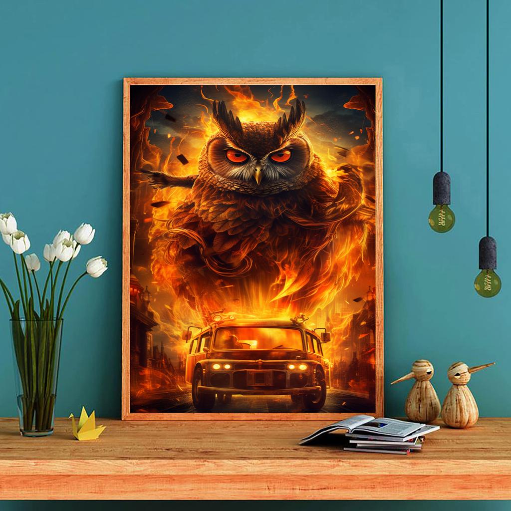 DIY Diamond Painting Flaming Owl Cross Stitch Kit Mosaic Art Diamond Painting Full Circle/Square Diamond Home Decoration