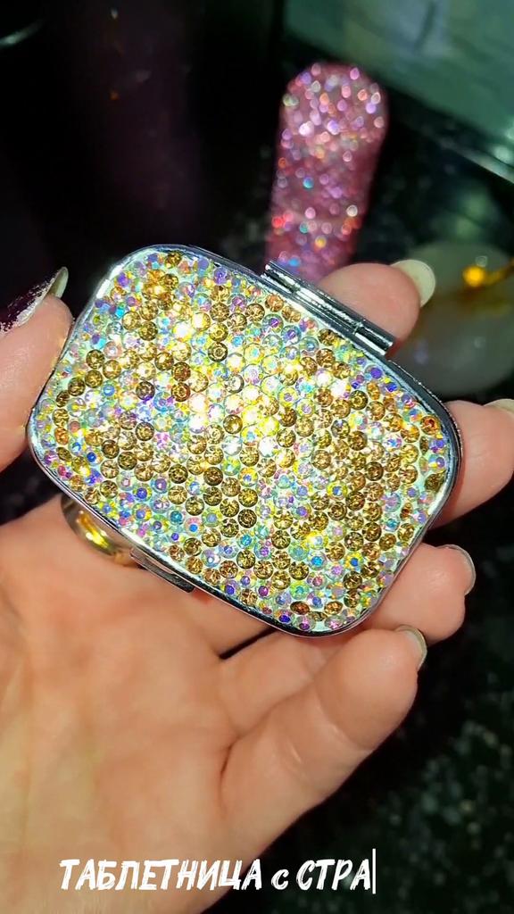 Bling Diamond Metal Medicine Box 2 Grids Pill Box Travel Portable Tablet Vitamin Container Organizer Pillbox Mini Storage Box