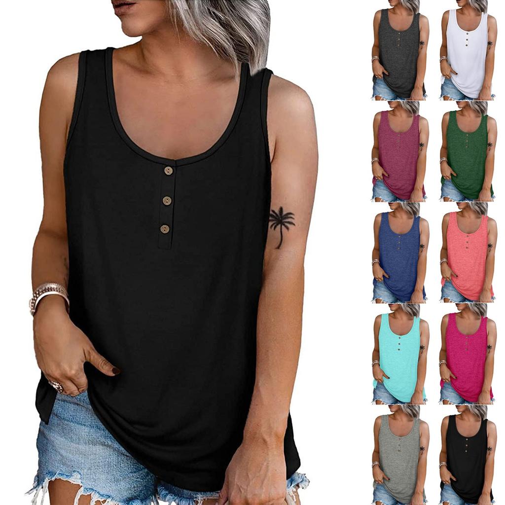 Women Summer 2022 Sleeveless Casual Solid Color O-Neck T-Shirt Tops Blouse