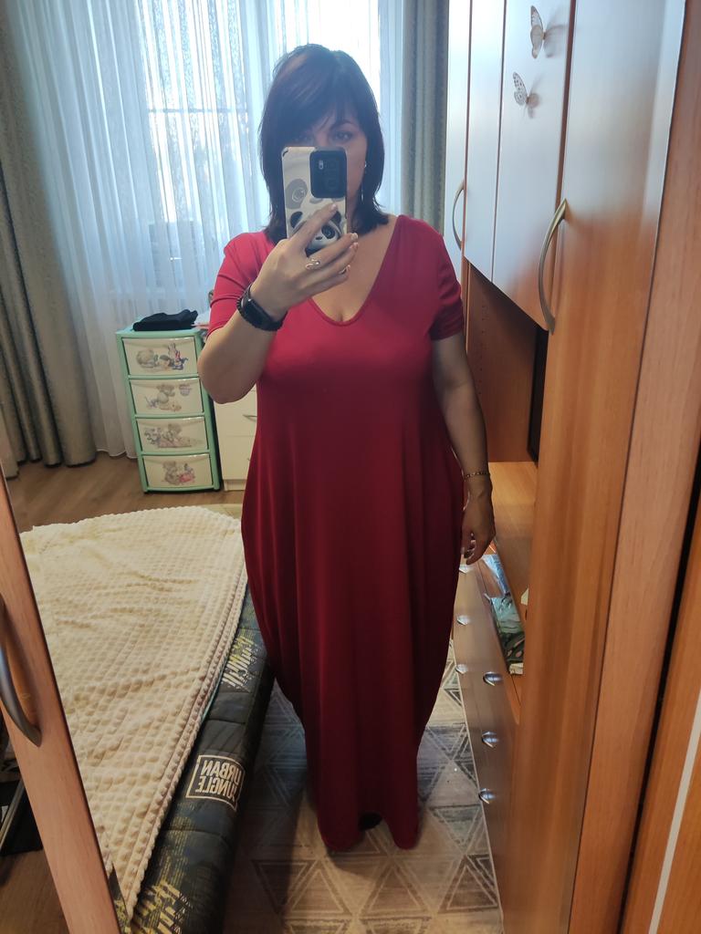 Fashion Women Casual Plus Size Solid V-Neck Pockets Short Sleeve Long Dress