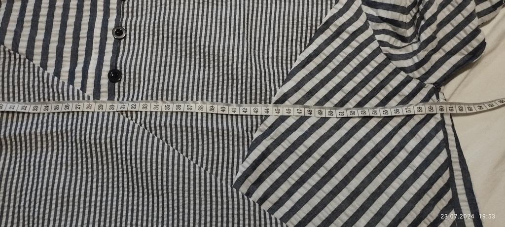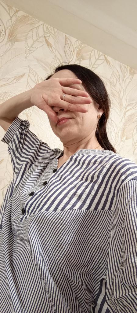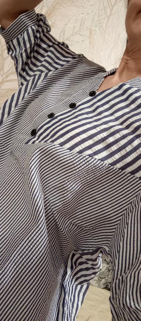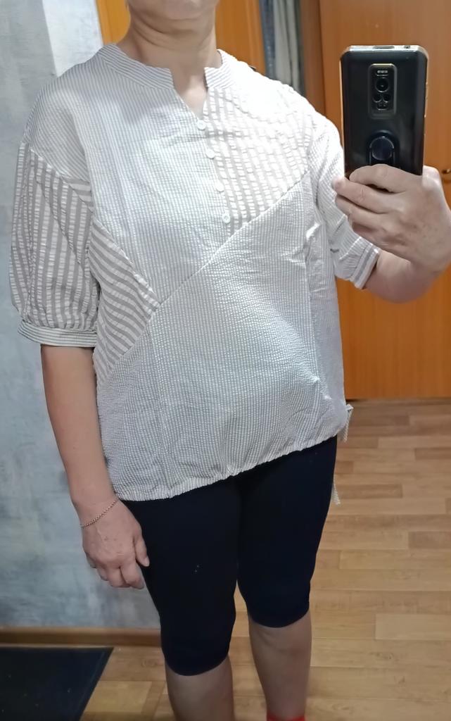 Nice blouse. Neat tailoring. Should have taken M, but... Thanks to the lower drawstring, you can wear it with jeans.