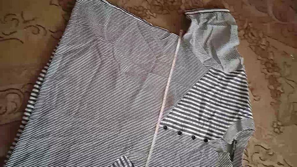 The blouse is wonderful! I love the geometric variations of stripes. It looks unusual and attracts!