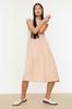 Women's Fashion Casual Sleeveless Midi Emerald Green Straight Cut High Collar Midi Woven Woven Dress
