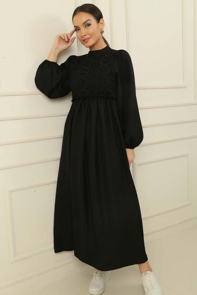 Laced Linen Effect Long Dress