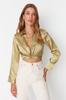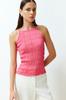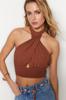 Women's Fashion Blouse Halter Neck Sleeveless Brown Stand Collar Regular Fit Pleated Knitted Blouse