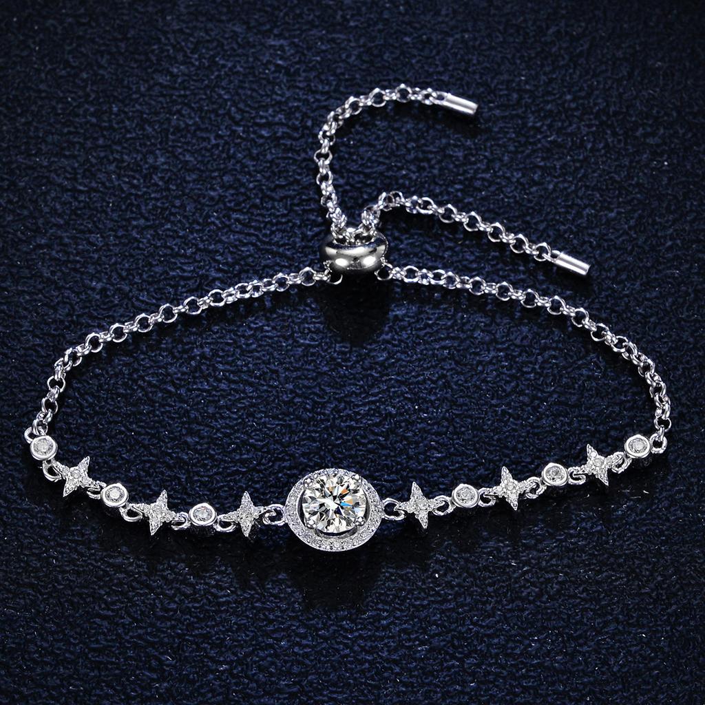 S925 Silver Bracelet Moissanite Bracelet Moissanite Round Bag Simple Women's Style