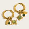 Plated Stainless Steel Hoop Earrings for Women Vintage Green Natural Stone Charms Trendy Waterproof Jewelry