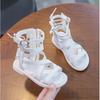 Girls Sandals Soft Bottom Little Princess Shoes Summer New Children's High Roman Shoes Baby Peep-toe Beach Shoes
