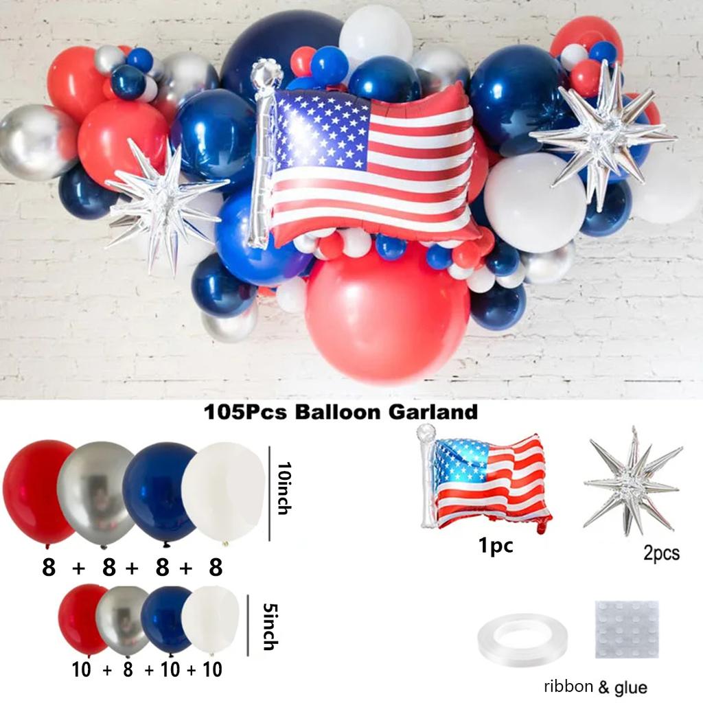 Featival Balloons Arch Kit Red, White and Blue Party Decoration for American Flag USA Foil Balloons For Patriotic