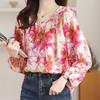 Women's Tops Loose Long Sleeve Chiffon Floral Shirt