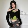 Y2k Vintage T-shirt Grunge Tie Dye Crop Tops 2-piece Women Casual Camis T-shirt Streetwear Long Sleeve Lace Up Tee Top