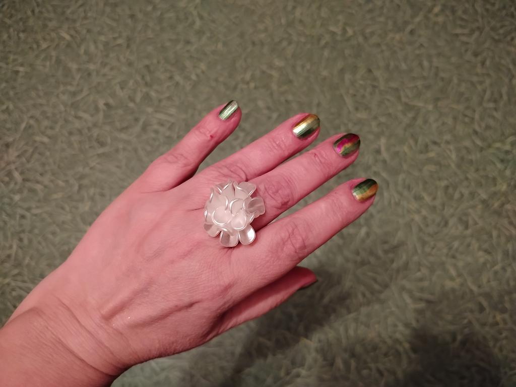 The item that arrived was completely different from what I ordered. I ordered a ring with a pearl, made of yellow metal, adjustable, What arrived was made of white metal, non-adjustable, with glass inserts instead of a pearl.