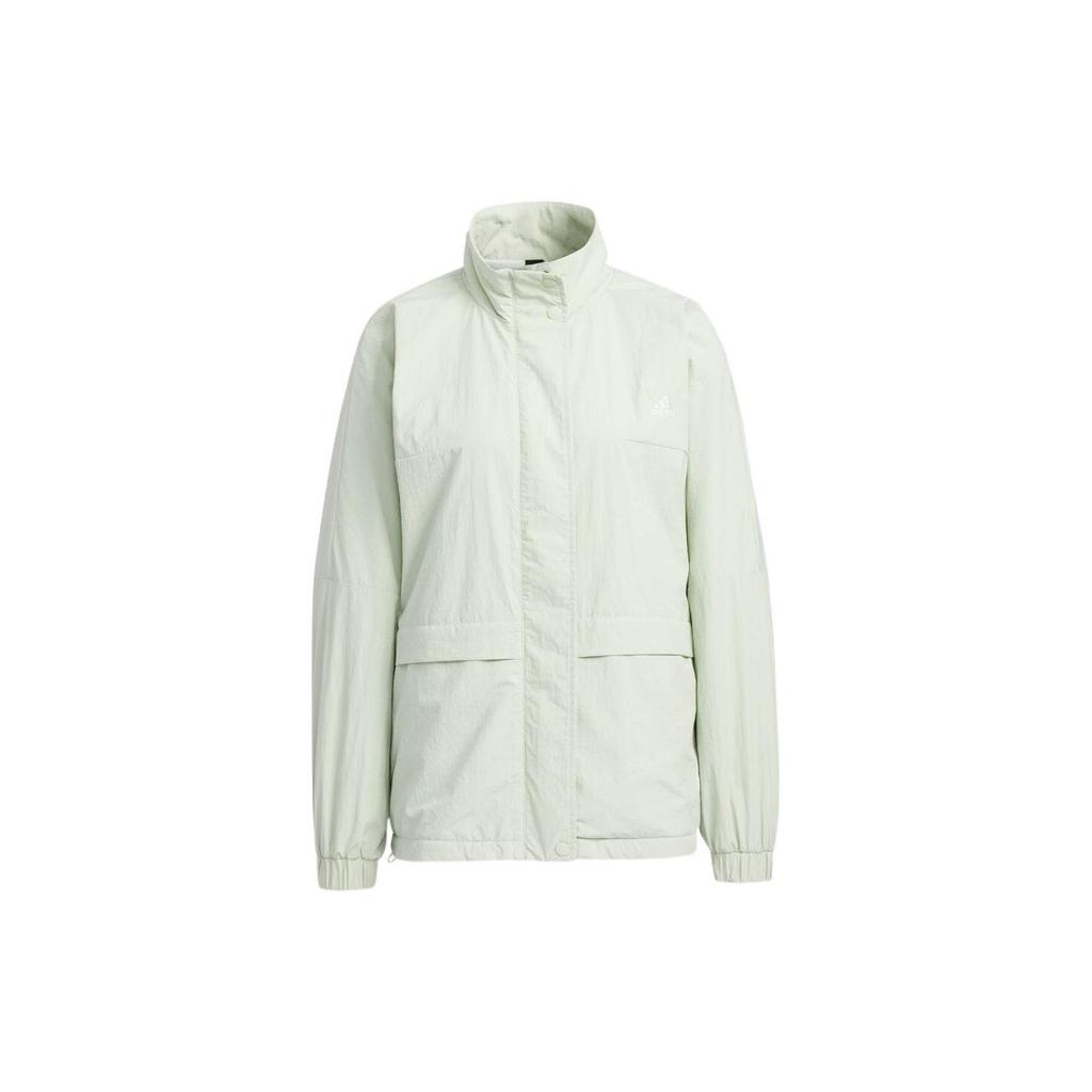 Adidas Solid Logo Stripe Stand Collar Jacket Women Outerwear Linen-Green HM2807
