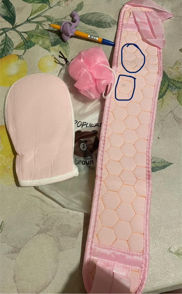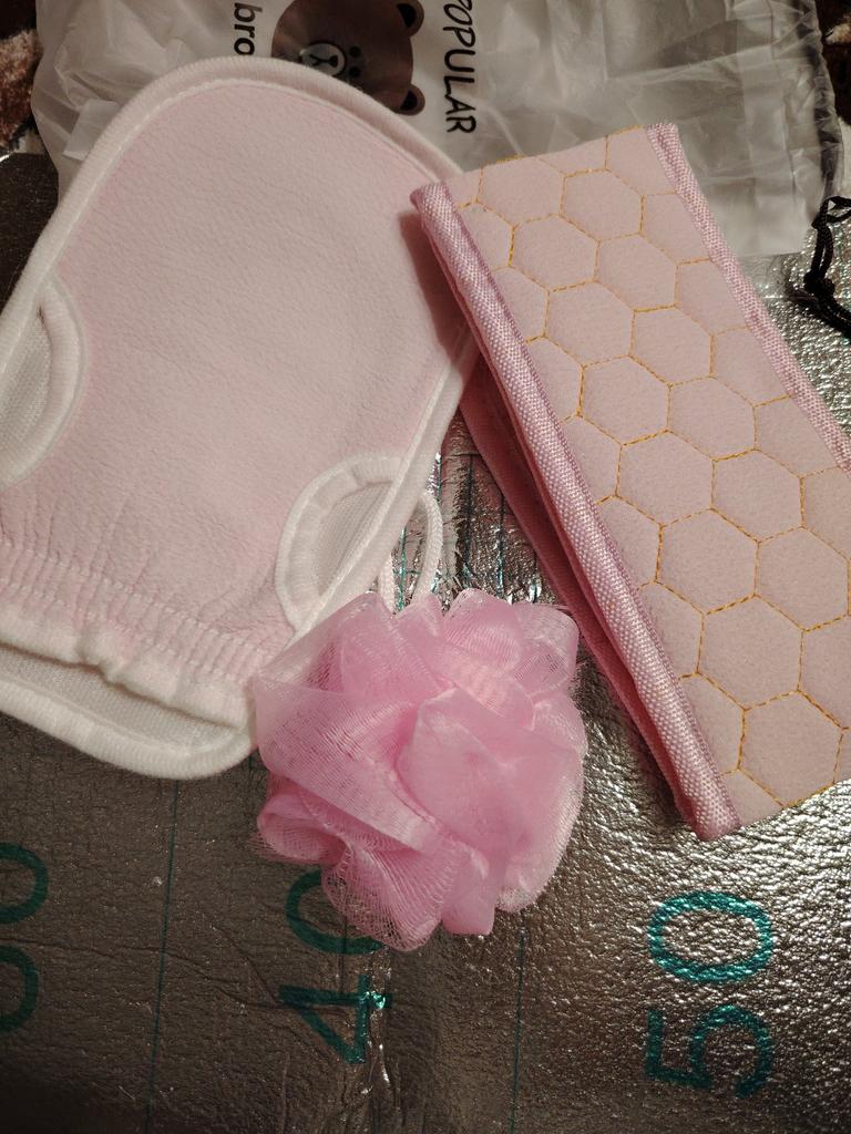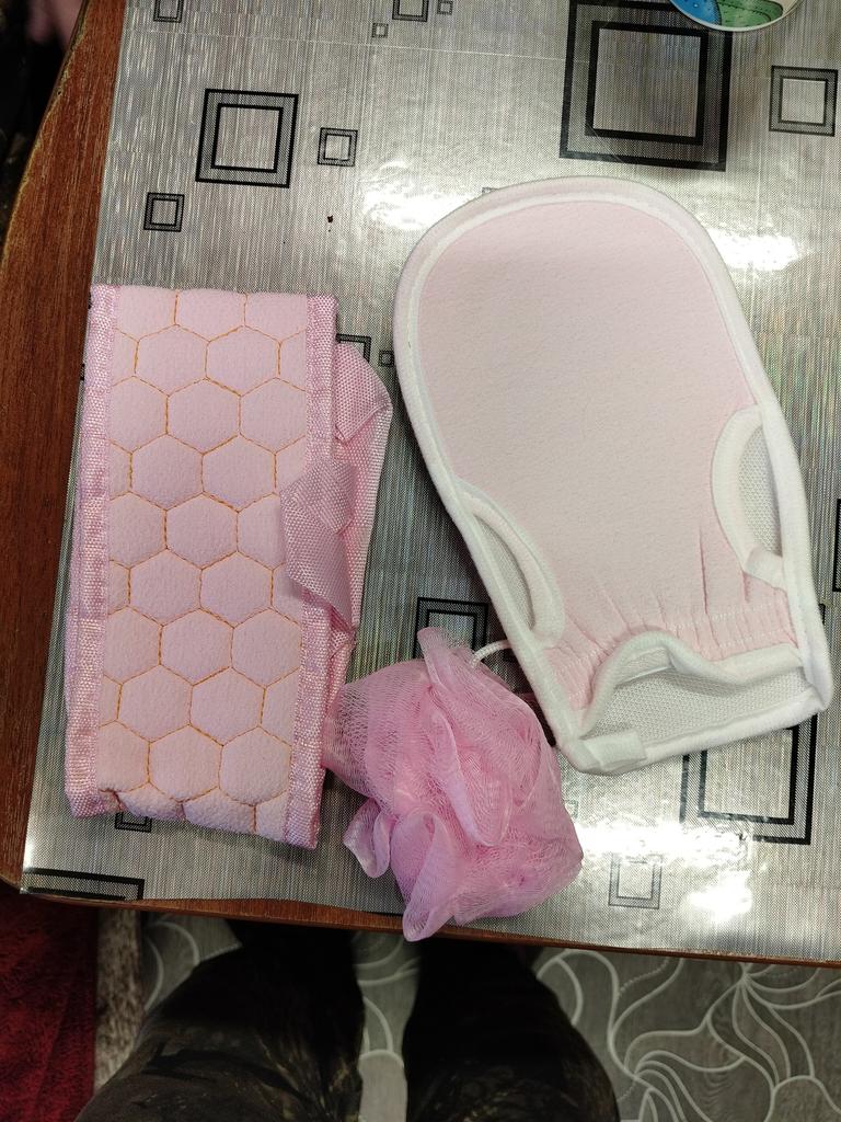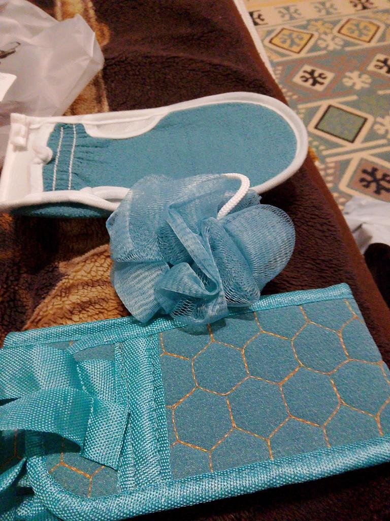 Received a bath set: liked everything except the small mesh sponge. It's unclear what it is for.