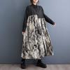 Spring and Autumn Women's Dress Loose Plus Size Literary Print Irregular Splicing Shirt Dress Fashion Dresses