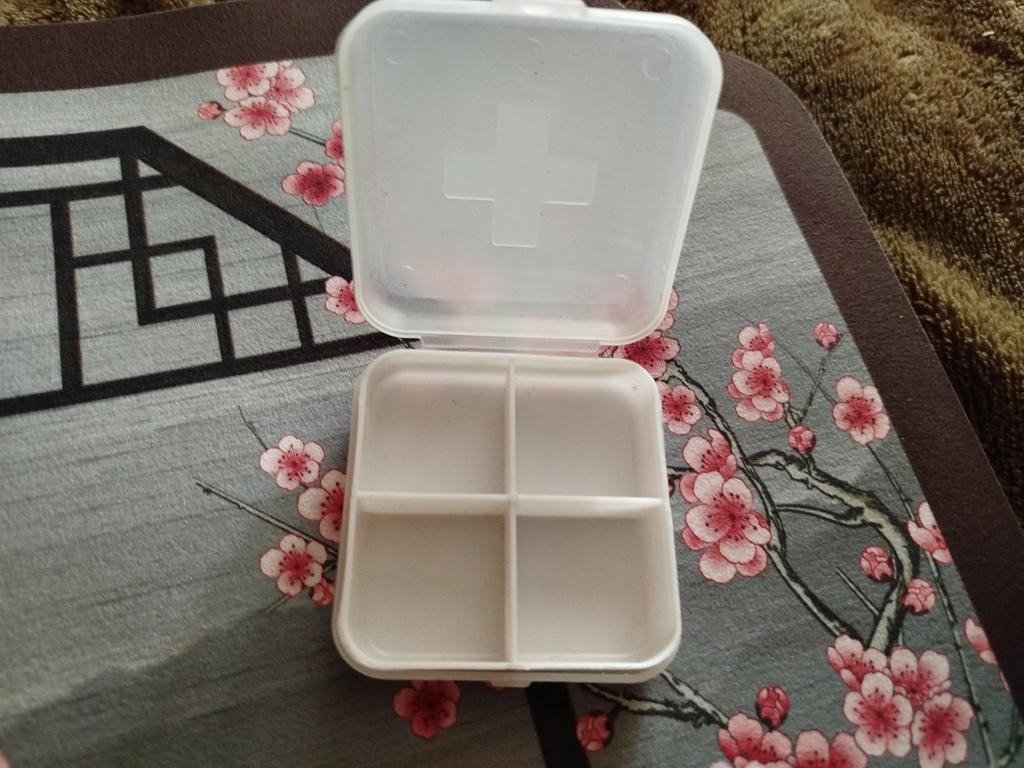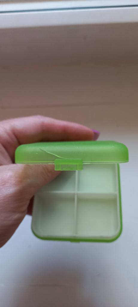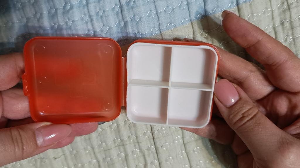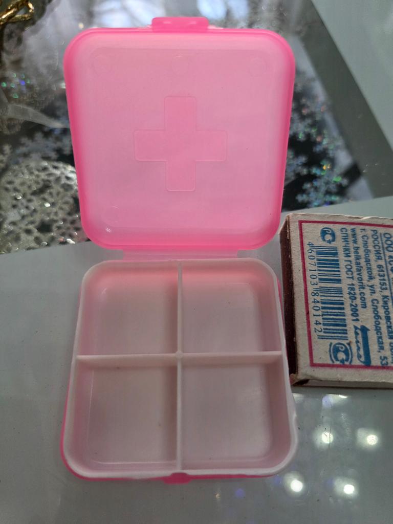 Very convenient pill organizer. Compact size, closes tightly, convenient to carry in a handbag, 4 compartments. Good quality, I am satisfied.