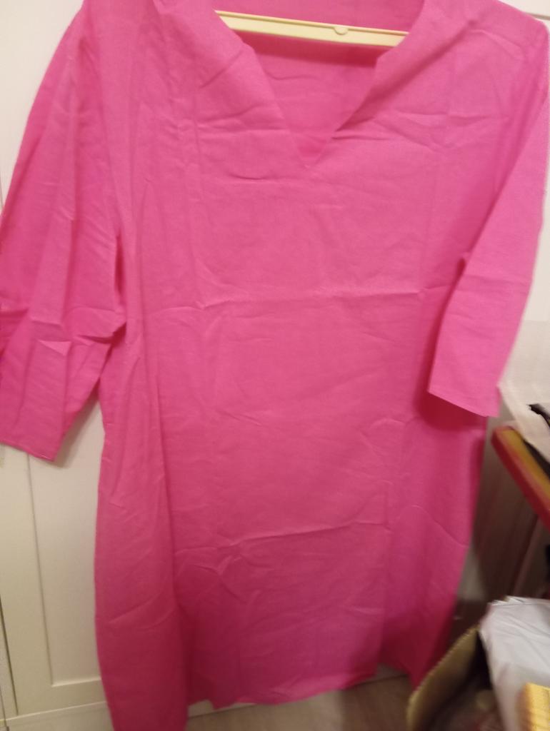 Cotton fabric for sheets. 3 sizes smaller. Looks like a nightgown. Horror!