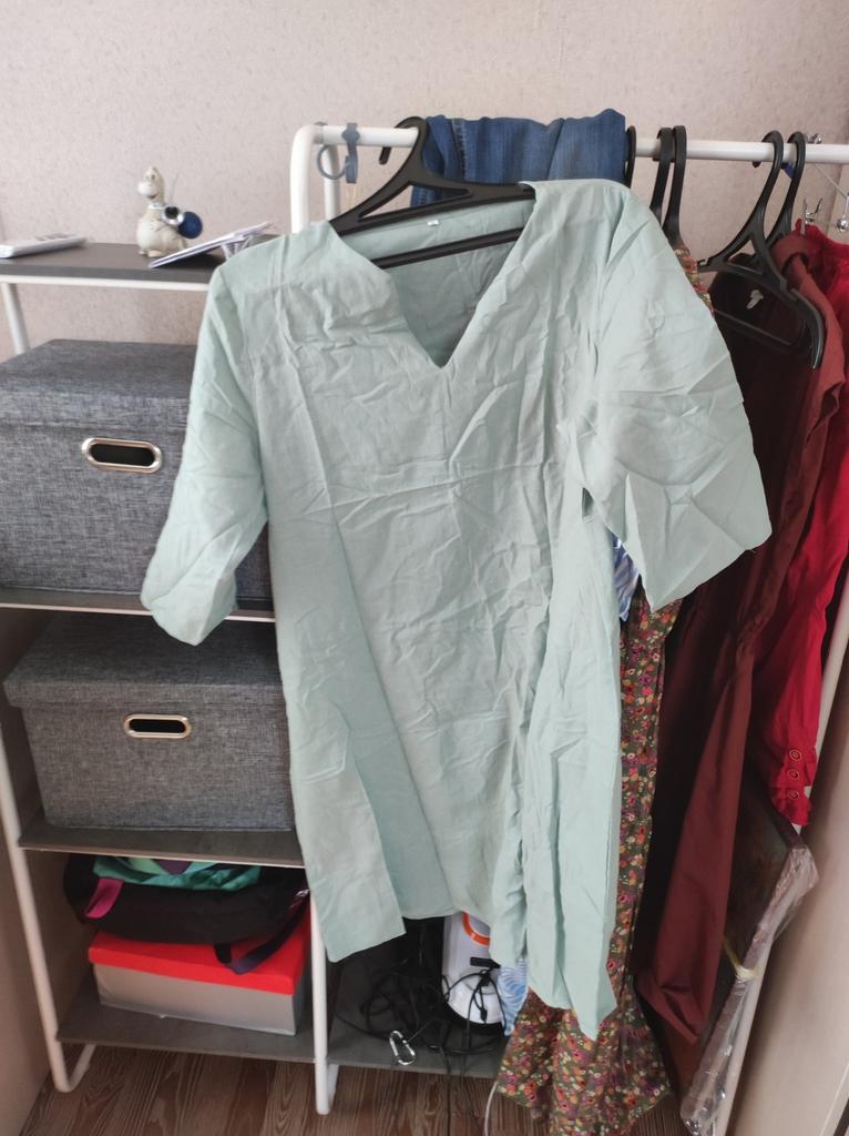 The dress is poorly finished, there are threads hanging everywhere and the seams are unfinished. In addition, the material is so thin that it looks more like an operating room dress, and of poor quality. It's definitely not suitable for going out on the street - it's completely see-through, like gauze. No quality. In addition, the color does not resemble army green at all, it is identical to surgical clothing - an ugly color. Massacre.