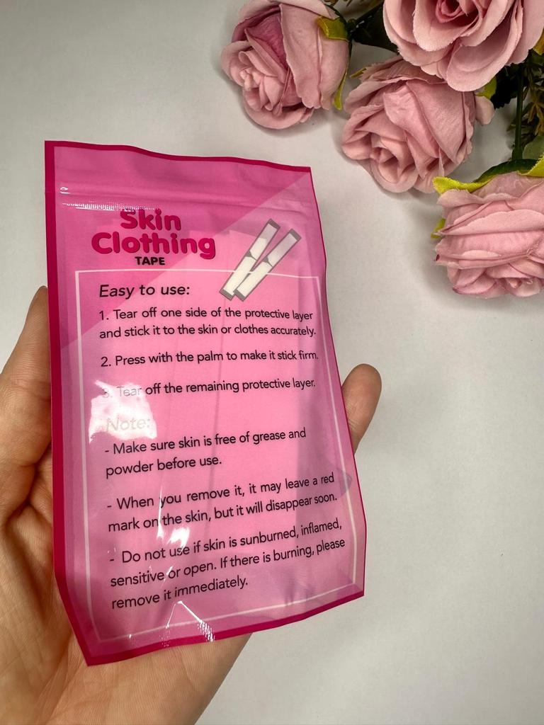 Double-sided clothing tape, invisible on clothes and body. This fashion accessory provides a stylish, confident and comfortable look, while emphasizing beauty and elegance, will relieve you of worries and allow you to avoid awkward situations. It is easy to use, fits easily into your bag and comes to the rescue in emergency situations. Product information: Color: Transparent. Material: Hypoallergenic. Quantity and size: 50 pieces Instruction: Make sure skin is clean and dry. Remove the protective film and press the tape firmly to the fabric or skin. Remove the second protective film and press it onto the desired surface. The best double-sided tape for your body and clothes, keeping you looking great all day long! Ideal for special occasions such as wedding day, formal events or parties, helping you look irresistible. Definitely recommend.