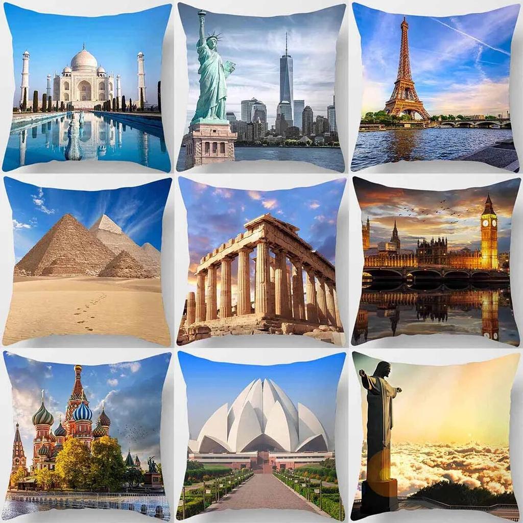 Landmark Architectural Print Square Pillowcase Home Decor Car Sofa Cushion Cover