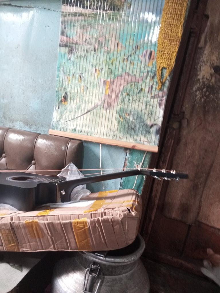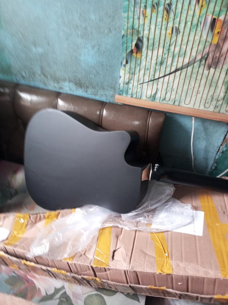 The guitar 🎸 arrived as ordered! Whole, intact! Has six metal strings! The only thing is that this time the package 📦 took a long time to be delivered!
