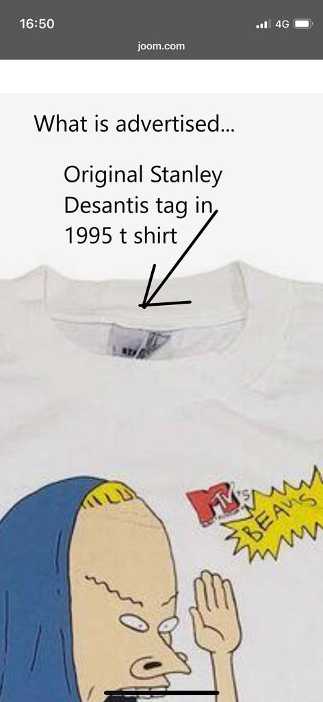 I ordered "Stanley Desantis Beavis Butthead The Great Cornholio 1995 Mtv Tee Unisex T-Shirt", and I was sent a fake (reprint) t shirt, not at all the 1995 Desantis. The photos cleary show a Stanley Desantis tag with the correct credits under the print. The advertisement cleary stated "Stanley Desantis 1995". You sold and sent me fake stuff which is illegal in my part of the world. I want to send this back and get a refund.