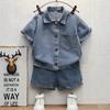 Boys' Jeans Suit Summer Handsome Short Sleeve Fashionable Thin Boys' Summer Two-piece Set Casual Blue Suit