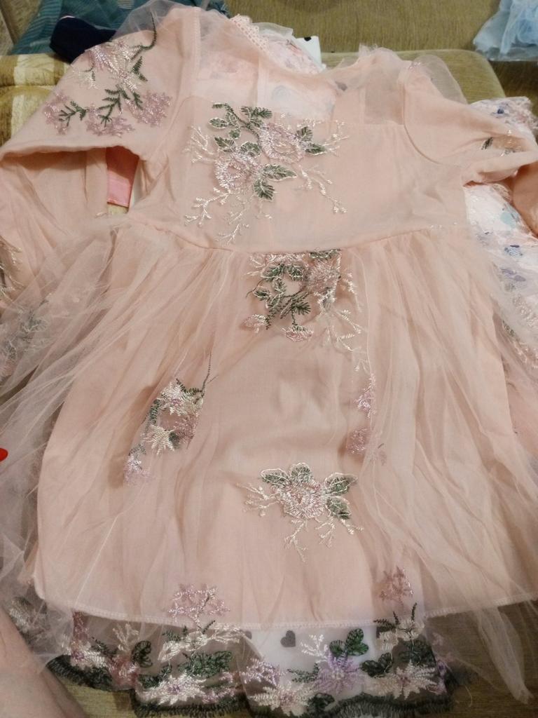 Girls Long Sleeve Dress Flower Embroidered Princess Dress Puff Sleeve Palace Dress Girl Dress