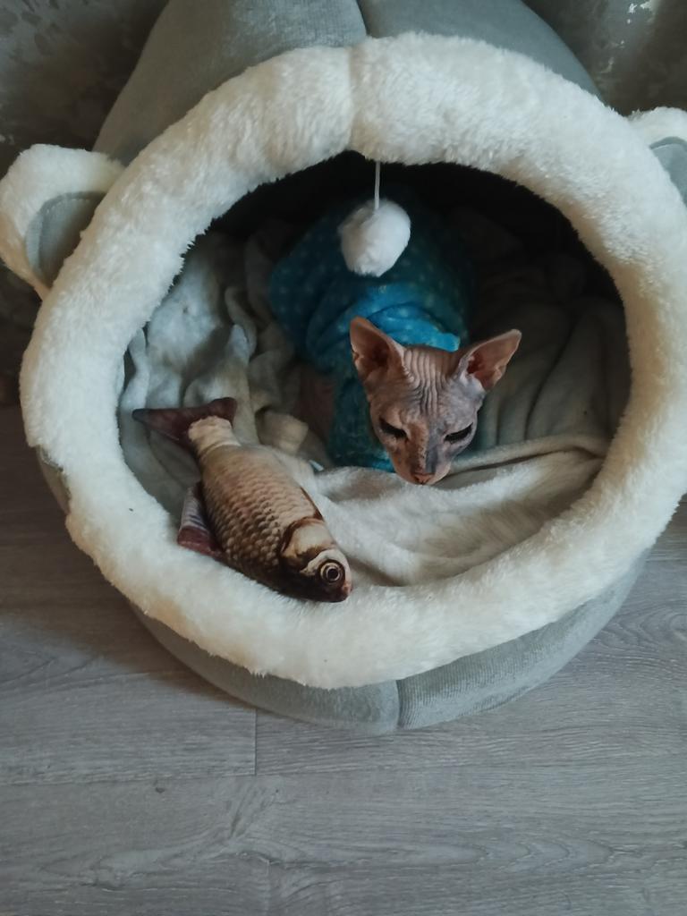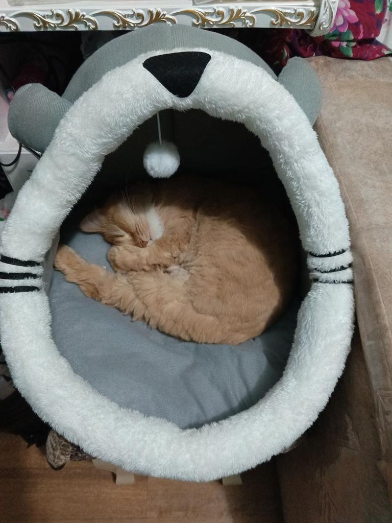 I ordered a nice house for the cat, but for some reason he didn’t approve of it. But Musa is happy to not even leave his house.