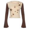 Harajuku Style Reverse Car Collar Contrasting Color Sparkling Star Print T-shirt with Personalized and Versatile Micro Flare Long Sleeved Top