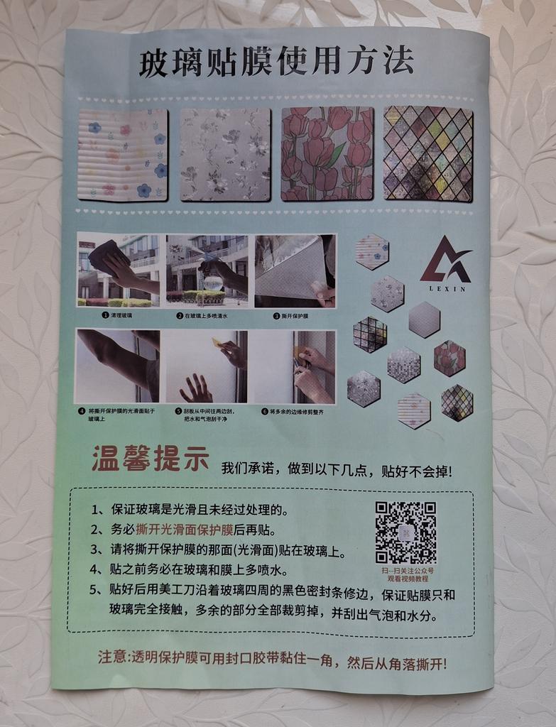 With its electrostatic adhesion, this adhesive-free glass film can be easily applied to any flat, clean glass surface using just water. Perfect for those who love to change their home decor frequently or for renters looking to keep their space clean and damage-free.