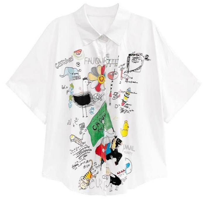 DIMANAF 2024 Plus Size New Summer Style Blouse Vintage Retro Design Short Sleeve Colorful Print Casual Shirt Women Loose Shirt Print Shirt