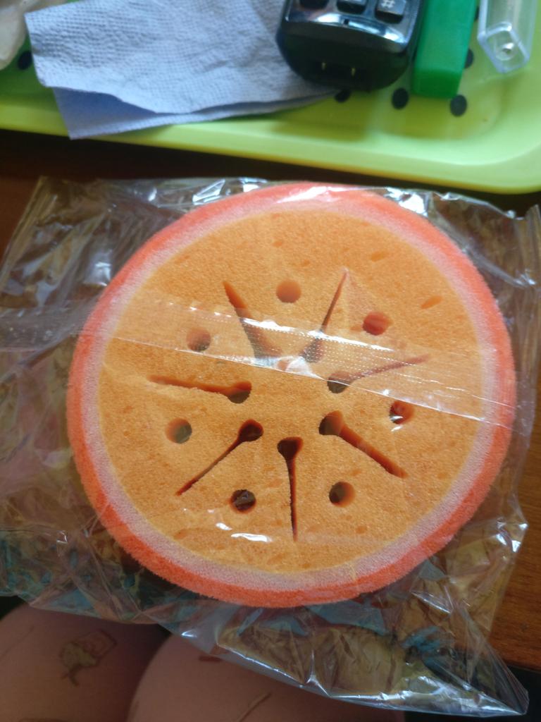 Good sponges, 3 pcs in a set. Nice, very cute, nice. I took two sets, "orange" and "strawberry"