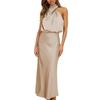 Women gown dress features halter, sleeveless, waist tight and loose hem design, which can present your fashionable and elegant charm, and make you become the spotlight of the colleagues.